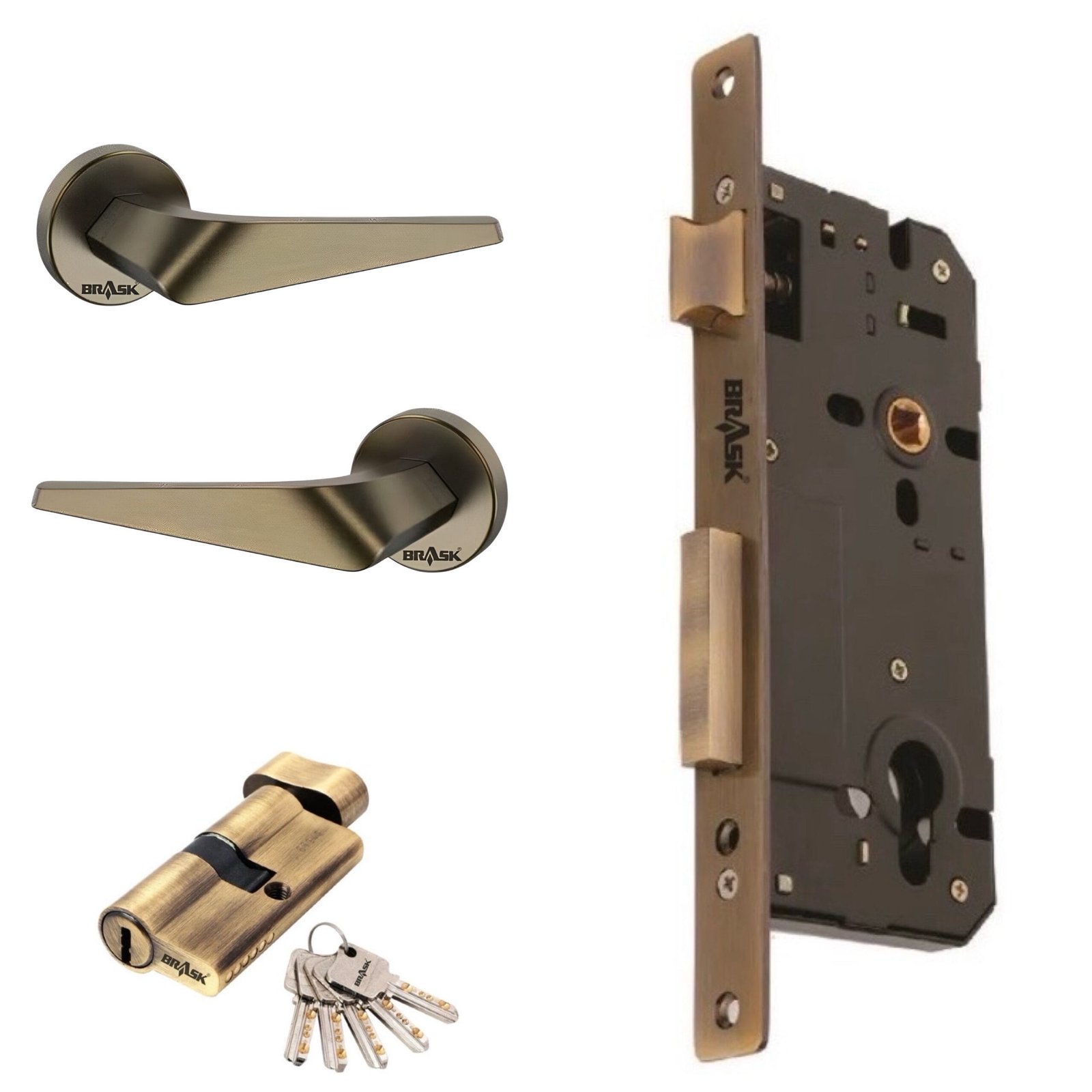 BRASK Brass Mortise Handle Set – Aero Model, Antique Brass | Strong & Durable Handle Set for Bedroom, Bathroom & Main Door